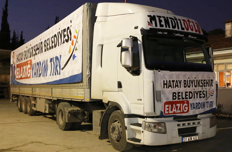 Elazığ’da meydana gelen depremin yaralarını sarmak için Hatay Büyükşehir Belediyesi tarafından hazırlanan ve geçen gün Hatay’dan yola çıkan yardım TIR’ları Elazığ ve Malatya’ya ulaştı.