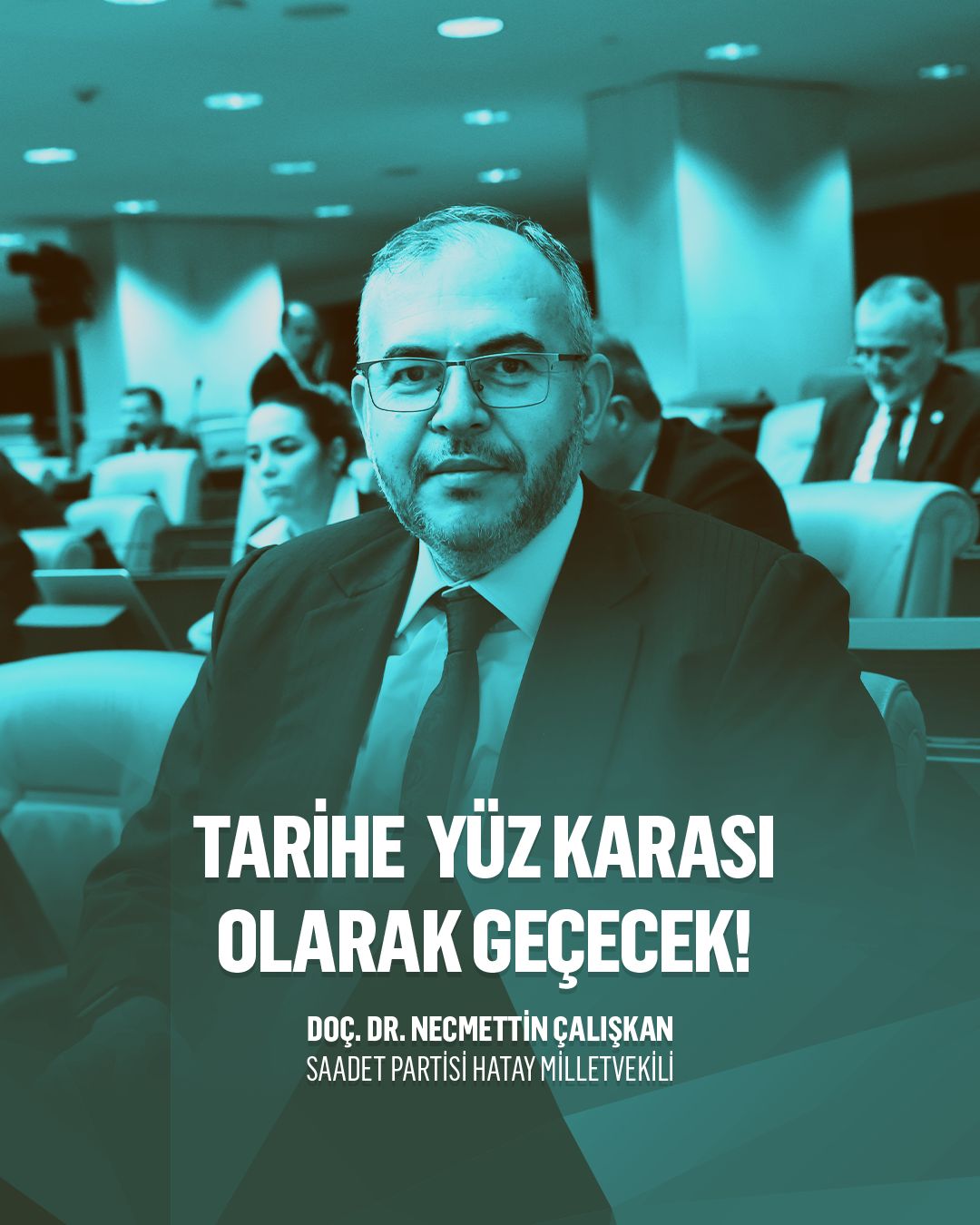 Saadet Partisi Hatay Milletvekili Doç. Dr. Necmettin Çalışkan, TBMM Genel Kurulu’nda yaptığı konuşmada, Maden Yasası görüşmeleri sırasında Ak Parti iktidarının 24 yıllık iktidar bilançosunu çarpıcı ifadelerle ortaya koydu. Çalışkan; “Bugün torunlarınıza anlatacak bir gün yaşıyorsunuz. Tarihe belki de bir yüz karası olarak geçecek bir gün” dedi.