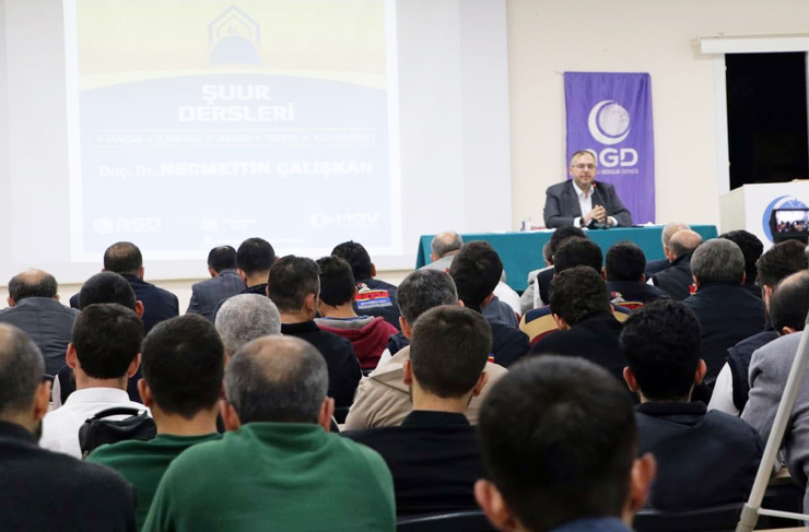 Anadolu Gençlik Derneği (AGD) Hatay Şubesinin düzenlediği “Şuur Dersleri” Sohbetlerine bu hafta konuşmacı olarak katılan İlahiyatçı Yazar Doç. Dr. Necmettin Çalışkan “Peygamberimiz ve Aile” konusunu anlattı.