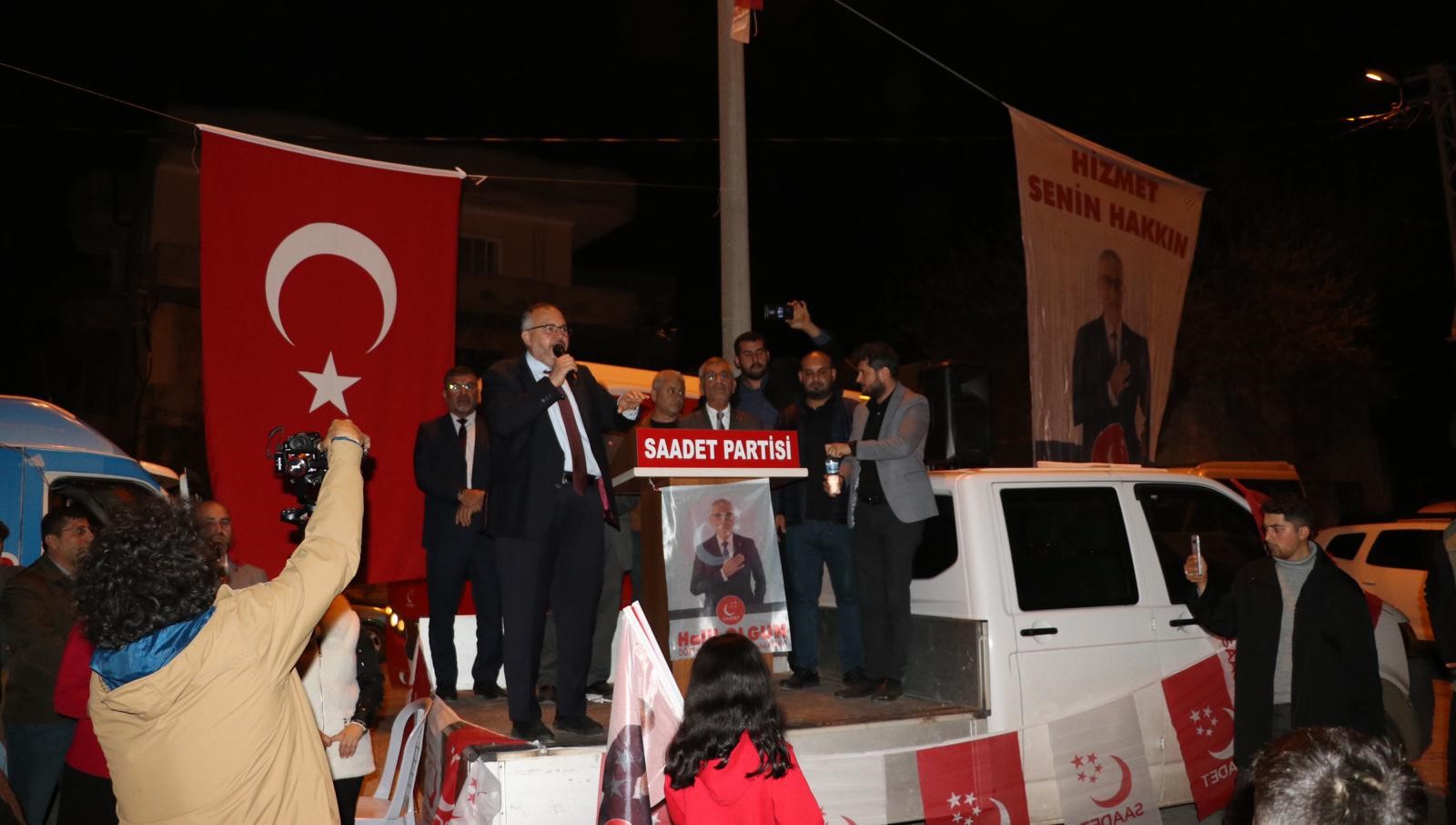 Saadet Partisi Hatay Büyükşehir Belediye Başkan Adayı Doç. Dr. Necmettin Çalışkan, belediye başkan adayları ve teşkilat mensuplarıyla iftar programında bir araya geldi. İftarın ardından Yeniyurt Mahallesi’nde vatandaşlara seslenen Çalışkan ilk olarak; “Milli Görüş Belediyeciliği ile Hatay’a Saadet Gelecek” düşüncesiyle yola çıktıklarını belirtti.