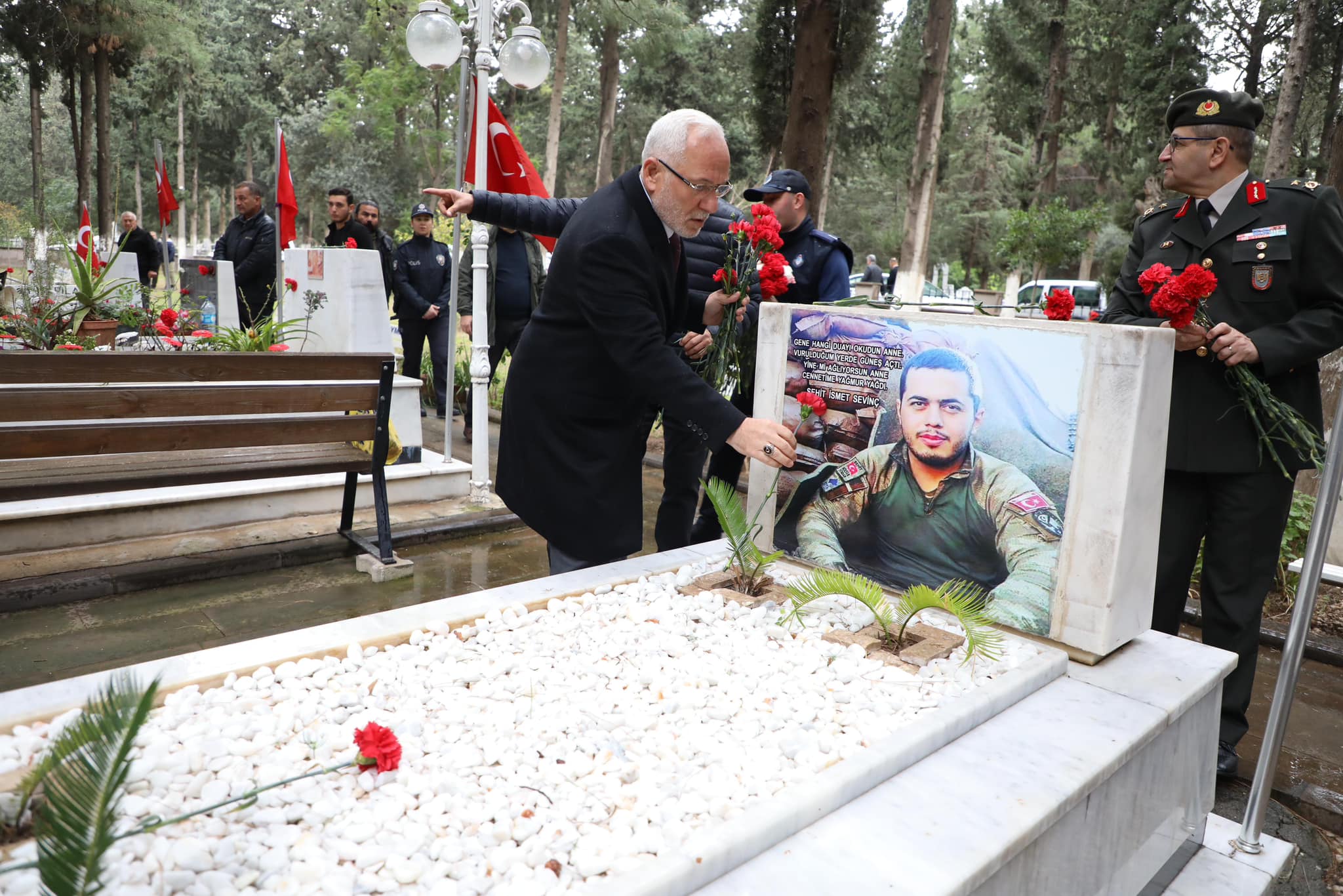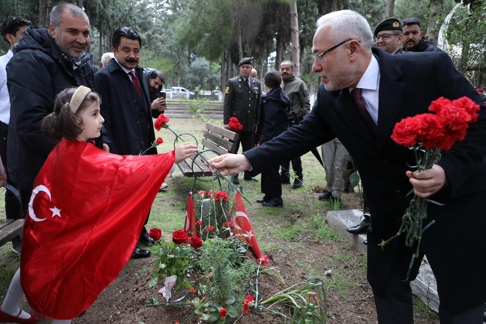 Çanakkale Zaferi ve Şehitleri Anma Günü dolayısıyla İskenderun Şehitliğinde düzenlenen törende, vatan için canını veren kahraman şehitlerimiz anıldı, mezarlarına karanfiller bırakıldı.