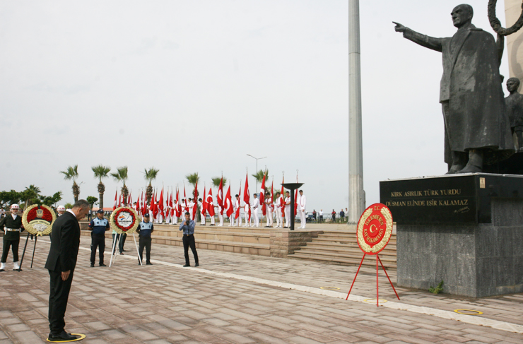 Törende ilk olarak İskenderun Kaymakamı İskender Yönden, 39. Mknz. Piyade Tugay Komutanı ve Garnizon Komutanı Tuğgeneral Alparslan Kılınç ve İskenderun Belediye Başkanı Fatih Tosyalı Ulu Önderimiz Mustafa Kemal Atatürk’ün manevi huzuruna çelenk sundu.