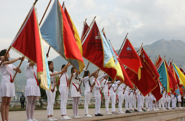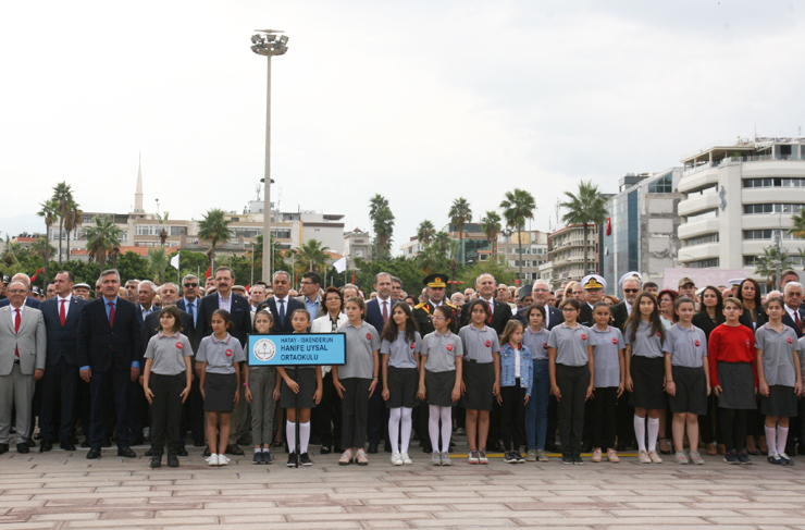 Atatürk Anıt Alanı’nda düzenlenen çelenk sunma törenine İskenderun Kaymakamı İskender Yönden, Hatay Milletvekilleri Abdulkadir Özel ve Suzan Şahin, 39. Mknz. Piyade Tugay Komutanı ve Garnizon Komutanı Tuğgeneral Alparslan Kılınç, İskenderun Belediye Başkanı Fatih Tosyalı, Hatay Barosu İskenderun Temsilcisi Sevinç Çakıcı, İSTE Rektörü Türkay Dereli, siyasi partilerin ilçe başkanları, meclis üyeleri, kamu kurum ve kuruluşlarının temsilcileri, muhtarlar, oda başkanları, sivil toplum kuruluşlarının temsilcileri, askeri ve sivil erkân, öğrenciler ile çok sayıda vatandaş katıldı. Törene ayrıca, İSTE’de düzenlenen törene katılmak üzere kentimize gelen Türkiye Odalar ve Borsalar Birliği Başkanı Rifat Hisarcıklıoğlu da katıldı.