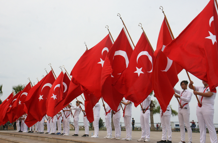 Çelenk sunulmasını takiben Cumhuriyetimizin banisi Büyük Önder Mustafa Kemal Atatürk ve kahraman silah arkadaşları başta olmak üzere kutsal vatan topraklarımızın bütünlüğü ve asil milletimizin selameti için canlarını feda eden tüm şehitlerimizin ve gazilerimizin anısına bir dakikalık saygı duruşunda bulunularak, istiklal marşımız eşliğinde şanlı bayrağımız göndere çekildi.