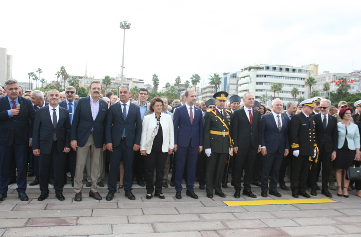 Atatürk Anıt Alanı’nda düzenlenen çelenk sunma törenine İskenderun Kaymakamı İskender Yönden, Hatay Milletvekilleri Abdulkadir Özel ve Suzan Şahin, 39. Mknz. Piyade Tugay Komutanı ve Garnizon Komutanı Tuğgeneral Alparslan Kılınç, İskenderun Belediye Başkanı Fatih Tosyalı, Hatay Barosu İskenderun Temsilcisi Sevinç Çakıcı, İSTE Rektörü Türkay Dereli, siyasi partilerin ilçe başkanları, meclis üyeleri, kamu kurum ve kuruluşlarının temsilcileri, muhtarlar, oda başkanları, sivil toplum kuruluşlarının temsilcileri, askeri ve sivil erkân, öğrenciler ile çok sayıda vatandaş katıldı. Törene ayrıca, İSTE’de düzenlenen törene katılmak üzere kentimize gelen Türkiye Odalar ve Borsalar Birliği Başkanı Rifat Hisarcıklıoğlu da katıldı.