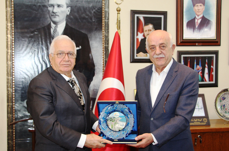 Deniz Ticaret Odası üyeleriyle bir araya gelip sektör hakkında fikir alışverişinde bulunmak amacıyla İskenderun’a gelen İstanbul ve Marmara, Ege, Akdeniz, Karadeniz Bölgeleri (İMEAK) Deniz Ticaret Odası Meclis Başkanı Cengiz Kaptanoğlu, Belediye Başkanı Seyfi Dingil’i de ziyaret etti.