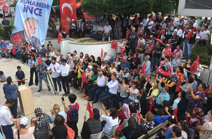 24 Haziran’da kutsal bir görev bizi bekliyor. Nasıl asker nöbet tutuyorsa, 24 Haziran sabahı erkenden kalkacağız, sandıklarda bir vatan nöbeti bizi bekliyor. Demokrasiyi, halkı, hakkı, adaleti savunmak yürek ister, birikim ister, cesaret ister, Cumhuriyet Halk Partisi’ni ister. Cumhurbaşkanı adayımız Muharrem İnce’yi ister. Bizler aynı evladı sevdiğimiz gibi, bu vatanı, bu bayrağı ve geleceği seviyoruz. Bu büyük bir aşk, büyük bir sevgi… Sevgi ve Emek hiç kaybetmemiştir. Vatan Sevgisi ve emek kazanacaktır” şeklinde konuştu.