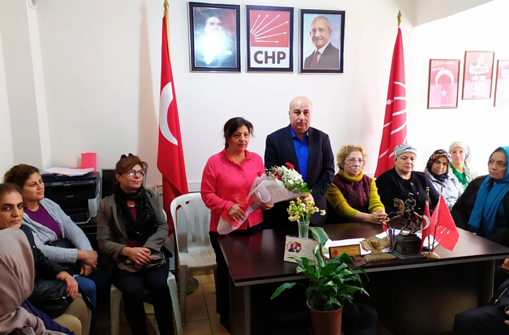 Cumhuriyet Halk Partisi (CHP) Belen İlçe Başkanı Fevzi Yüksel, ilçe binasında partililerle bir araya geldi. Delege seçimlerinin tamamlanmasının ardından düzenlenen toplantıda konuşan CHP Belen Kadın Kolları Başkanı Emine Ayaz, delege listesinde kadınlara öncelik vermesinden ötürü İlçe Başkanı Fevzi Yüksel’e teşekkür ederek; “19 bayan delegemiz var. Başkanıma çok teşekkür ediyorum bizlere öncelik verdiği için” dedi ve Yüksel’e çiçek takdim etti.