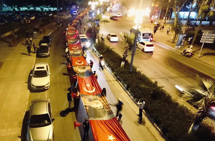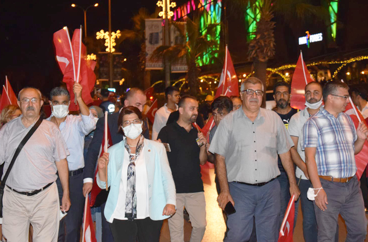 CHP İlçe Yönetimi çelenk sunma töreninin ardından ellerinde bayraklarla, kortej oluşturarak, kentin sokaklarında yürüyüp vatandaşların bayramını kutladı. Korteje Hatay Büyükşehir Belediyesinin araçları da katıldı. Yürüyüşte vatandaşların 300 metre uzunluğunda Atatürk posteri ve Türk bayraklarını taşıması 30 Ağustos’un coşkusuna bir kat daha anlam kazandırdı. HBB’nin araç kortejine ve zafer yürüyüşüne ev ve iş yerlerinde bulunan vatandaşlar da alkışlarla destek verdi. CHP’nin yürüyüşü vatandaşlarda da büyük takdir topladı. (Haber: Helga TERBİYELİ)