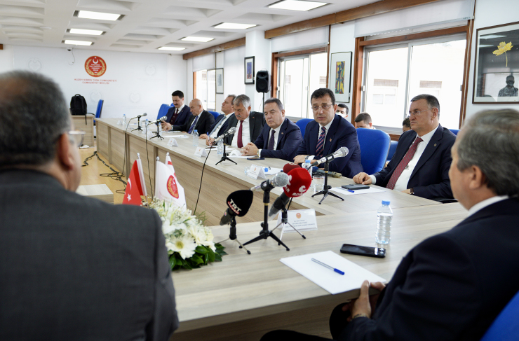 CHP’li 7 büyükşehir belediye başkanı, Kılıçdaroğlu’nun talimatı doğrultusunda KKTC’de temaslarda bulundu. CHP Genel Başkan Yardımcısı Seyit Torun önderliğindeki heyette; İstanbul Büyükşehir Belediye Başkanı Ekrem İmamoğlu, İzmir Büyükşehir Belediye Başkanı Tunç Soyer, Hatay Büyükşehir Belediye Başkanı Lütfü Savaş, Antalya Büyükşehir Belediye Başkanı Muhittin Böcek, Adana Büyükşehir Belediye Başkanı Zeydan Karalar, Aydın Büyükşehir Belediye Başkanı Özlem Çerçioğlu ve Mersin Büyükşehir Belediye Başkanı Vahap Seçer yer aldı.