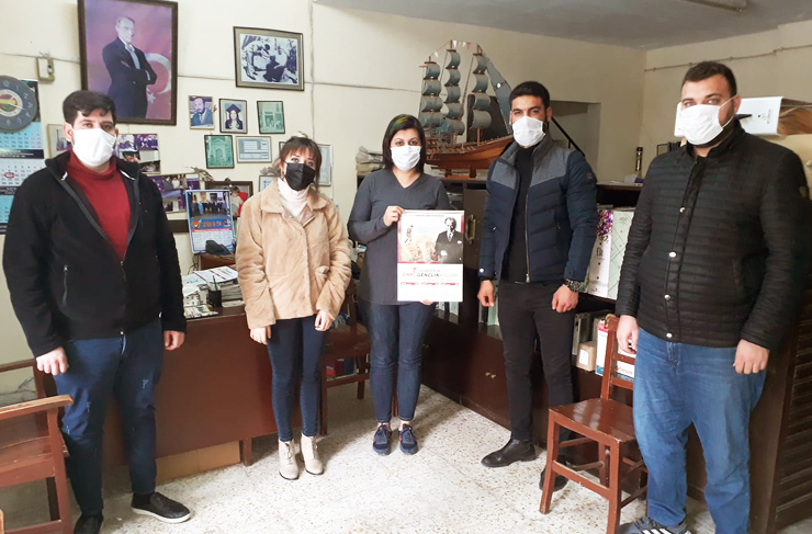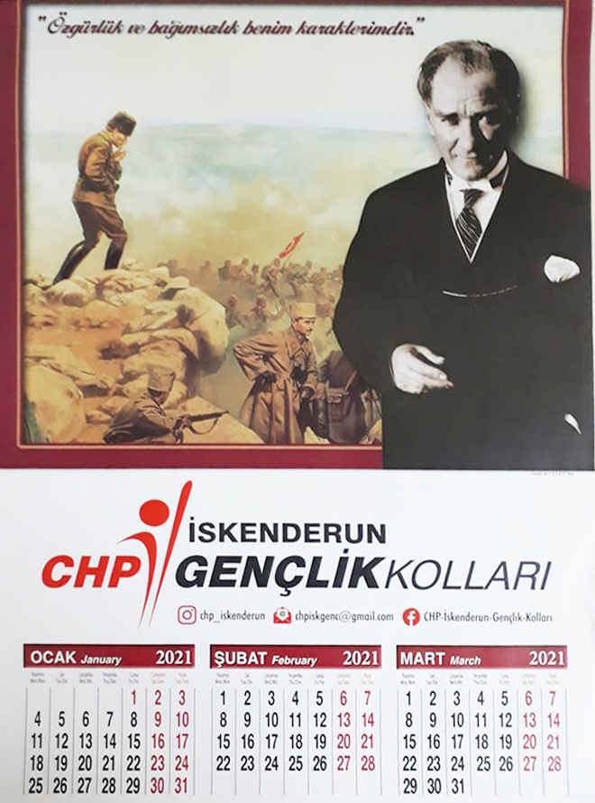 CHP Gençlik Kolları Genel Başkan Yardımcısı İklime Kabasakal, İskenderun Gençlik Kolları Başkanı Mert Üs ve yönetim kurulu üyesi Halef Konyalı ile Arsuz Gençlik Kolları Başkanı Mehmet Keskin, gerçekleştirdikleri nezaket ziyaretinde, yeni yılımızı kutlayarak, Ulu Önder Mustafa Kemal Atatürk’ün birbirinden güzel fotoğraflarıyla hazırlamış oldukları takvimi hediye ettiler.
