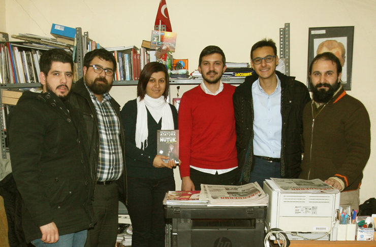 Gazetemiz Genel Yayın Yönetmeni Semir Bağırsakçı, Yazı İşleri Müdürü İlyas Edip Terbiyeli, Sayfa Editörü Helga Terbiyeli ile Muhabir ve Köşe Yazarı Doğan Süslü tarafından karşılanan CHP’li Gençler, Ulu Önder Mustafa Kemal Atatürk’ün ‘Nutuk’ kitabını da günün anısına Helga Terbiyeli’ye armağan ettiler.