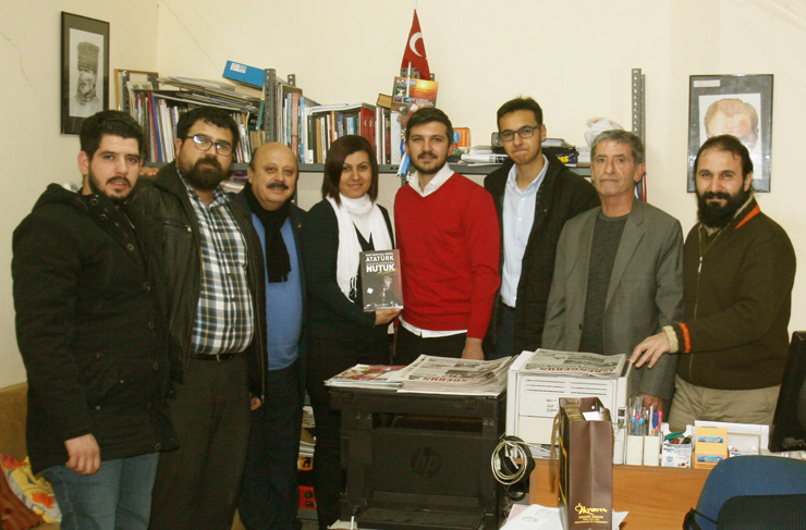 Gazetemiz Genel Yayın Yönetmeni Semir Bağırsakçı, Yazı İşleri Müdürü İlyas Edip Terbiyeli, Sayfa Editörü Helga Terbiyeli ile Muhabir ve Köşe Yazarı Doğan Süslü tarafından karşılanan CHP’li Gençler, Ulu Önder Mustafa Kemal Atatürk’ün ‘Nutuk’ kitabını da günün anısına Helga Terbiyeli’ye armağan ettiler.