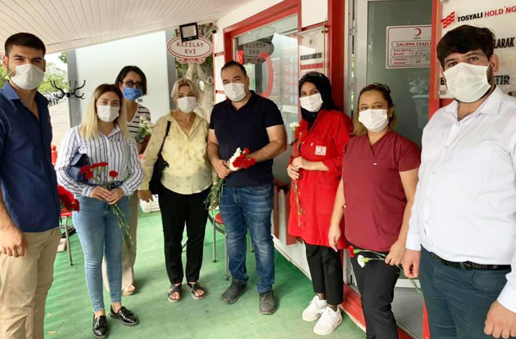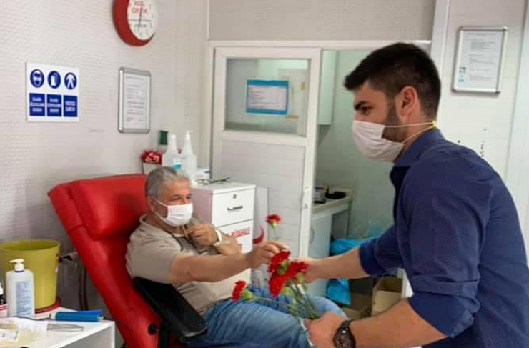 Kızılay ekibine ve kan veren vatandaşlara karanfil dağıtan CHP Heyeti, hem Kızılay ekibine hem de kan bağışında bulunan vatandaşlara teşekkürlerini ilettiler. (Haber: Helga TERBİYELİ)