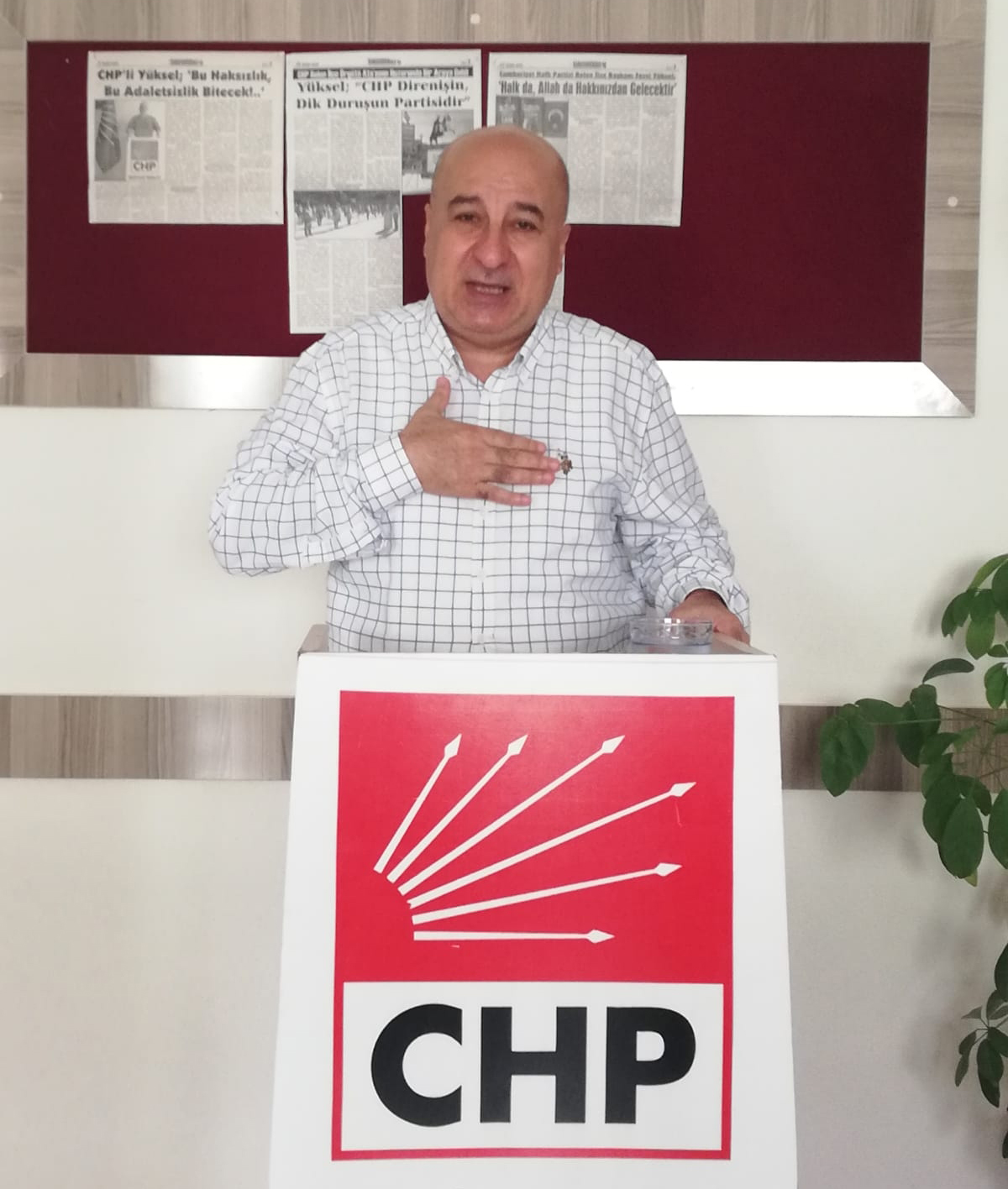 Cumhuriyet Halk Partisi Belen İlçe Başkanı Fevzi Yüksel, haftalık basın toplantısını, ilçe binasında gerçekleştirdi.