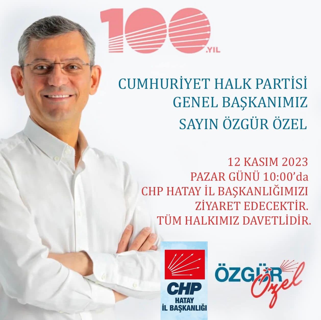 Konuyla ilgili sosyal medya hesabından paylaşım yapan Hatay Milletvekili Mehmet Güzelmansur da CHP Genel Başkanı Özgür Özel’in 12 Kasım Pazar günü Hatay’a geleceğini 09.30’da Hatay Havalimanında karşılama yapılacağını ve 10.00’da da CHP Hatay İl Başkanlığının ziyaret edileceğini kaydetti.