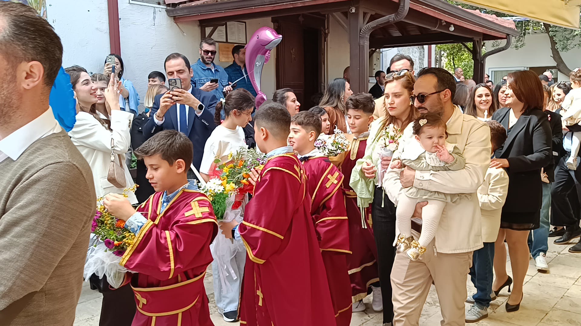 Başta kilise Pederi Papasoğlu olmak üzere, çocuklar ellerinde çiçeklerle süslenmiş mumlarla ve aileleri ile birlikte kilise bahçesinde yürüyüp, ilahiler söylediler. Duaların edildiği, mumların yakıldığı görkemli ayin, çocukların aileleri ile yürümesi sırasında oldukça renkli görüntülere sahne oldu.