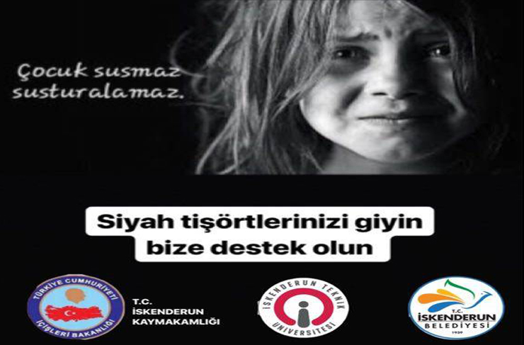 İskenderun Kaymakamlığı, İskenderun Belediyesi ve İskenderun Teknik Üniversitesi (İSTE) işbirliğiyle, çocuk istismarı ve ihmali konusunda duyarlılığı geliştirmek ve bu konuda farkındalık oluşturmak üzere büyük bir sosyal sorumluluk projesi hayata geçiriliyor.