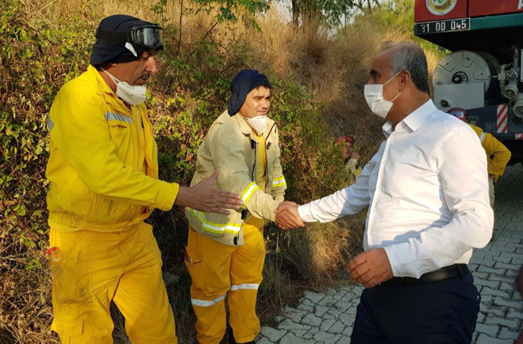 Yangının söndürülmesi için gecesini gündüzüne katan Hatay Büyükşehir ekiplerimize, Orman Genel Müdürlüğüne, çevre illerden gelen ekiplerimize ve yangının söndürülmesi için çaba sarf eden küçüğünden büyüğüne tüm vatandaşlarımıza teşekkür ediyorum. Bizlerde araçlarımızla, imkânlarımızla yangının tamamen söndürülmesi ve vatandaşlarımızın emniyeti için burada olacağız” şeklinde konuştu.