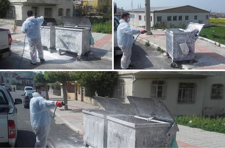 Daha önce ilçe genelinde belirli periyotlar çerçevesinde devam eden dezenfekte işlemleri salgına karşı önleyici tedbir olarak iki katına çıkarıldı. İskenderun Belediyesi Temizlik İşleri Müdürlüğü ekipleri tarafından çalışmalar kapsamında çöp konteynerleri çöplerin alınmasının ardından önce konteyner yıkama makinesi ile yıkanıyor, daha sonra da dezenfekte ediliyor.