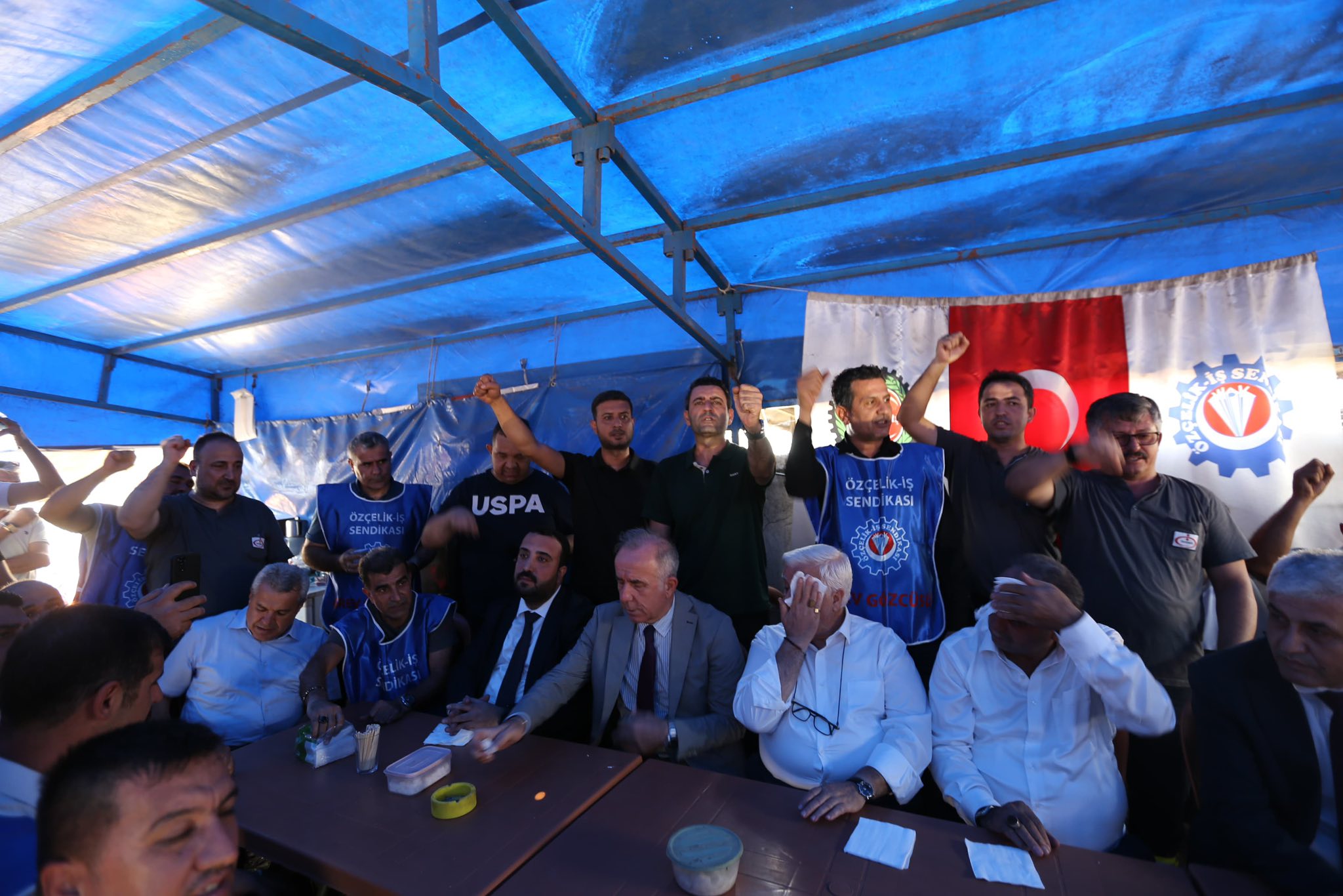 Genel Başkan Değirmenci, grevin sona erdirilmesi aşamasında, tüm olumlu yaklaşımlarına rağmen, işveren tarafının sabit tutumu nedeniyle sonuca ulaşılamadığını ifade ederek; “Nereye kadar gidecekse gitsin. İşçi kardeşlerimizin bu güne kadar yanlarında olduk, sonuna kadar yanlarında olacağız. Şeref namus sözü verdik. Tek kişi de kalsa bu çadır buradan kalkmayacak. Hak arayışındaki kardeşlerimizin ödeneklerini arttırdık. Eğitim yardımına başladık. Biz büyük ve güçlü bir aileyiz. Dayanışma içerisinde bu zor günleri de atlatacağız. Ancak şunu herkes bilsin ki, işçinin alın teri ve emeğinin karşılığını hiç kimseye yedirmeyeceğiz” şeklinde konuştu.