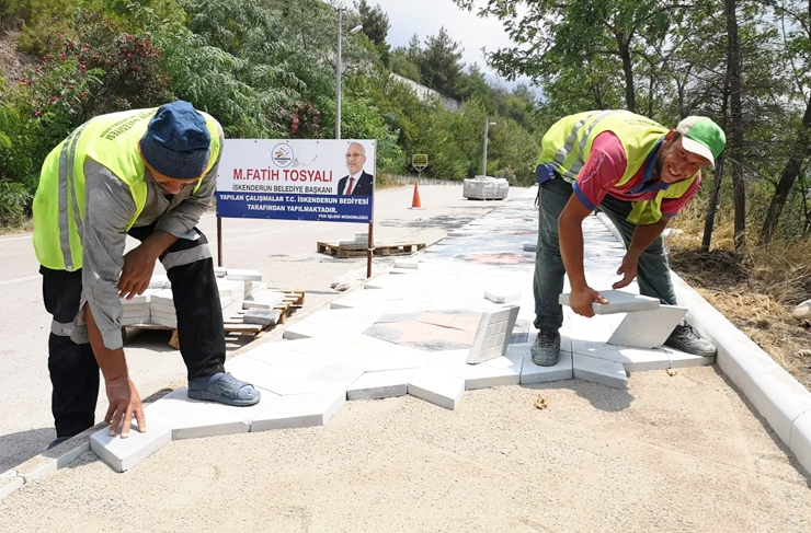 İskenderun Belediyesi şehrin muhtelif yerlerinde hayata geçirdiği yayalaştırma ve kaldırım çalışmalarına devam ediyor.