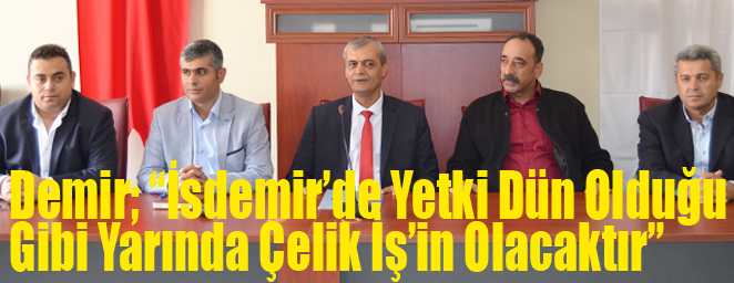 Geçtiğimiz ay İsdemir için yetki başvurusunda bulunduklarını ve bakanlığın çoğunluk kararı verdiğini hatırlatan Demir; “Türk Metal Sendikasının İsdemir’de 1 yılı aşan sürede oynadığı her türlü kirli oyun, tezgah ve senaryolarına karşı verdiğimiz mücadele sonunda 3 Eylül 2014 tarihinde Çelik-İş Sendikası, İsdemir için yetki başvurusunda bulunmuştur. Yapılan yetki müracaatı neticesinde Çalışma Bakanlığı’nın SGK kayıtlarına göre üye sayıları dikkate alınarak çoğunluk kararı vermesi yasal bir işlemdir. Ancak bu kesin bir sonuç değildir. Normal süreçte İsdemir A, B ve C gruplarının toplam sayısı 5409’du. 3 Eylül tarihi itibari ile Bakanlıkta çıkan üye sayımız 2760 olarak tespit edilmiştir. Sendikamız Çelik-İş, buna göre yüzde %52’ye ulaşan bir oranla yetkilidir” dedi.