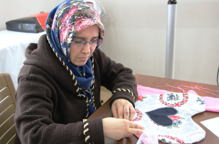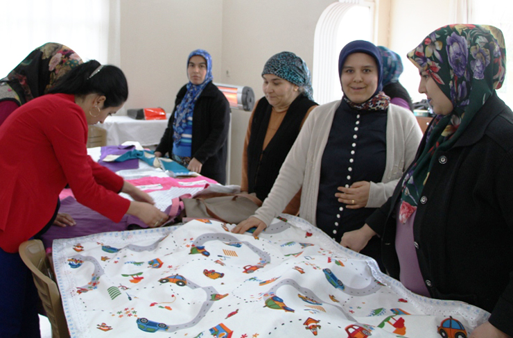 İskenderun Belediyesi Kültür ve Sosyal İşler Müdürlüğü kadınların sosyal, eğitsel ve mesleki yönden kendilerini geliştirmeleri sağlamak amacıyla dekoratif örtü ve pike dikimi kursu veriyor.