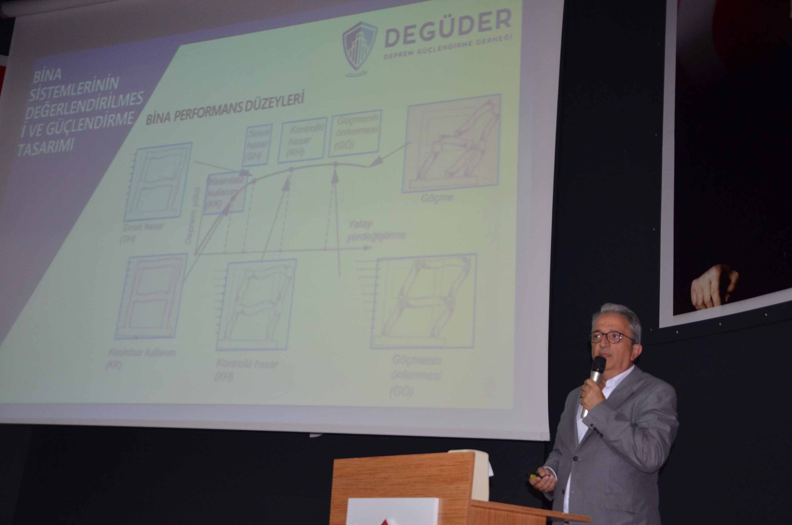 Seminere konuşmacı olarak katılan Deprem Güçlendirme Derneği (DEGÜDER) Yönetim Kurulu Başkanı Sinan Türkkan, Güçlendirme Teknikleri, Prof. Dr. Erdem Canbay, Deprem felaketi ile ilgili sunum yaparken, Prof. Dr. Ali Haydar Kayahan prefabrik yapıların deprem davranışı ve güçlendirme yaklaşımları, Yalın Aydın, bina güçlendirme ve restorasyonunda teknik tekstil kullanımı, Vahid Alinejadan BRS Sönümleyiciler Kullanımının yeni ve mevcut yapılara etkisi konularında sinevizyon destekli olarak sunumlarını gerçekleştirdiler.