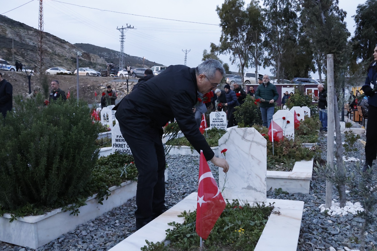 Habibi Neccar Camisinde kılınan sabah namazı ve hatim dualarının okunmasının ardından Narlıca Deprem Şehitleri Mezarlığı ziyaret edildi.