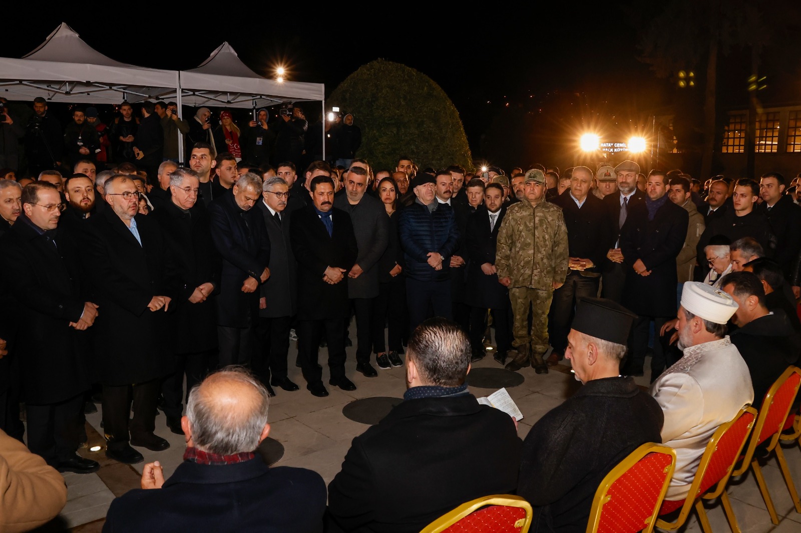 Törene; Hatay Valisi Mustafa Masatlı, HBB Başkanı Mehmet Öntürk, MKÜ Rektörü Prof. Dr. Veysel Eren, Ak Parti Genel Başkan Yardımcısı Hüseyin Yayman, Ak Parti Genel Merkez Yerel Yönetimler Başkan Yardımcısı Mücahit Yanılmaz, Hatay Milletvekilleri Adem Yeşildal, Lütfü Kaşıkçı, Servet Mullaoğlu, Nermin Yıldırım Kara, Mehmet Güzelmansur, Necmettin Çalışkan, Zafer Partisi Genel Başkanı Ümit Özdağ, Türkiye Barolar Birliği Başkanı Erinç Sağkan, il protokolü, kanaat önderleri ve binlerce vatandaş katıldı.