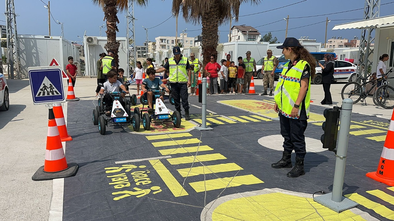 6 Şubat depreminin vurduğu Hatay’ın İskenderun ilçesinde konteyner kentte yaşayan çocuklar jandarma genel Komutanı ait mobil trafik eğitim Tır’ı ile hem eğlendiler hem öğrendiler. Çocukların trafik bilincini arttırmak için kurulan parkta trafik ışıklarını uygulamalı olarak öğrenen çocuklara eğitim tırı içerisinde Tim jandarma çizgi filmi izlettirildi.