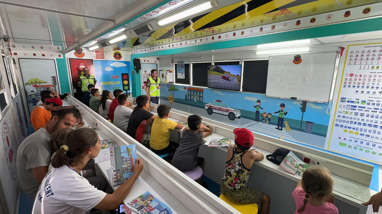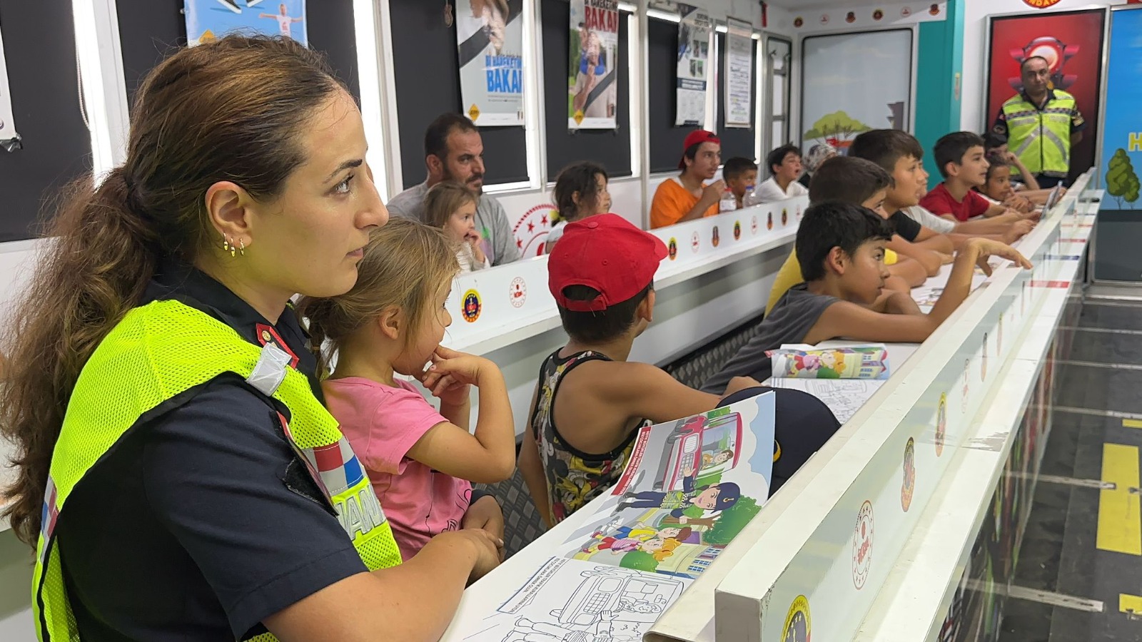 Trafik kurallarının insan hayatı için öneminin anlatıldığı filmi çocuklar dikkatle izlediler. Jandarma genel komutanlığı görevlileri trafik kurallarını çocuklara anlatırken bir depremzede kız çocuğu ise Jandarma görevlisi ablasının kucağında anlatılanları dinledi. Mobil eğitim Tırı ile trafik hakkında bir çok şey öğrendiklerini belirten çocuklar sağlanan imkanları çok beğendiklerini dile getirdiler. (Haber Merkezi)
