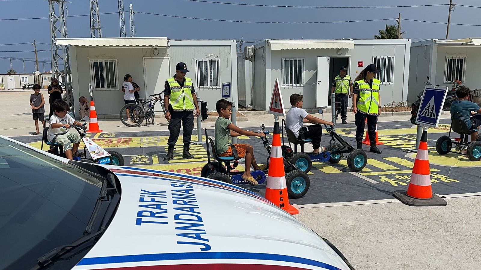 6 Şubat depreminin vurduğu Hatay’ın İskenderun ilçesinde konteyner kentte yaşayan çocuklar jandarma genel Komutanı ait mobil trafik eğitim Tır’ı ile hem eğlendiler hem öğrendiler. Çocukların trafik bilincini arttırmak için kurulan parkta trafik ışıklarını uygulamalı olarak öğrenen çocuklara eğitim tırı içerisinde Tim jandarma çizgi filmi izlettirildi.