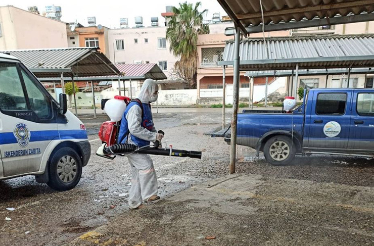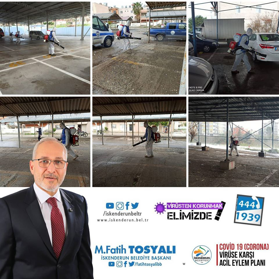 İskenderun’da dezenfekte edilen bölgeler: Kaymakamlık, Adliye Araçları, Camiler, Bankalar, Sahil, WC’ler, kapalı semt pazarları, ATM’ler, Sağlık evleri, Belediye Garajı, Muhtarlıklar, Öğrenci Yurtları, Aile Sağlık Merkezleri,32 Eczane, Sağlık Ocakları, Tüketici Hakem heyeti, AVMler, spor tesisleri halkımıza açık olan ve yoğun olarak kullanılan alanlar.