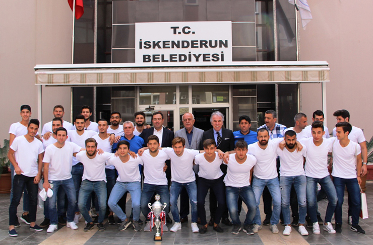 2017-2018 Futbol Sezonu Hatay Amatör Küme Süper Ligi play-off karşılaşmasının son haftasında Samandağspor’u 1-0 yenerek şampiyon olan İskenderun Belediyespor’un futbolcuları ve kulüp yöneticileri İskenderun Belediye Başkanı Seyfi Dingil’e teşekkür ziyaretinde bulundu. Kulüp Başkanı Levent Duman, ziyarette yaptığı konuşmada, spora ve sporcuya desteklerinden dolayı Başkan Seyfi Dingil’e teşekkür ederek zorlu bir maratondan başarılı bir şekilde çıktıklarını söyledi.