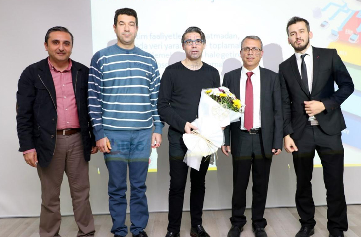 “Endüstri 4.0’a Giriş” başlıklı sunumunda; ICC Elektronik San. Tic. Ltd. Şti. Operasyon Direktörü ve Endüstri 4.0 Konsept Danışmanı Taner Yiğit, elektronik alanında Endüstri 4.0 uygulamaları hakkında bilgiler verdi. Verdiği örnekler ve sorduğu sorularla katılımcıları konferansa kilitleyen Yiğit’e, İSTE Sosyal Sorumluluk Projeleri Koordinatörü Yrd. Doç. Dr. Mehmet Naz tarafından çiçek takdiminde bulunuldu.