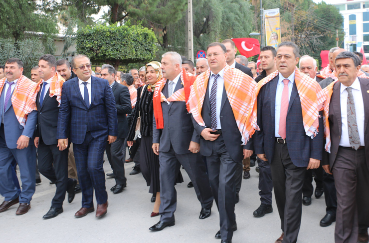 Vatandaşlar ile birlikte festival kortejinde yürüyen Hatay Büyükşehir Belediye Başkanı Doç. Dr. Lütfü Savaş, halk oyunları ekipleri, öğrencilerden oluşan koronun seslendirdiği İzmir Marşı, İlk Kurşun şarkısı ve Mehteran Takımı ile karşılandı.