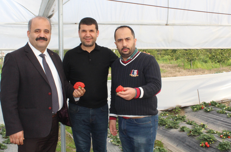 İlçe Gıda Tarım ve Hayvancılık Müdürü Soner Kıymacı ve Kaymakamlık Proje Koordinatörü Sait Uyar ile birlikte ilk çilek hasadını geçtiğimiz hafta içerisinde gerçekleştiren Ziraat Yüksek Mühendisi Mevlüt Coşkun çiftçilere çağrıda bulunarak; “Kısıtlı üretim alanlarından yüksek verim ve gelir elde etmek istiyorsanız mutlaka seracılığa yönelin. Biz bu konuda her türlü desteği vermeye hazırız” dedi.
