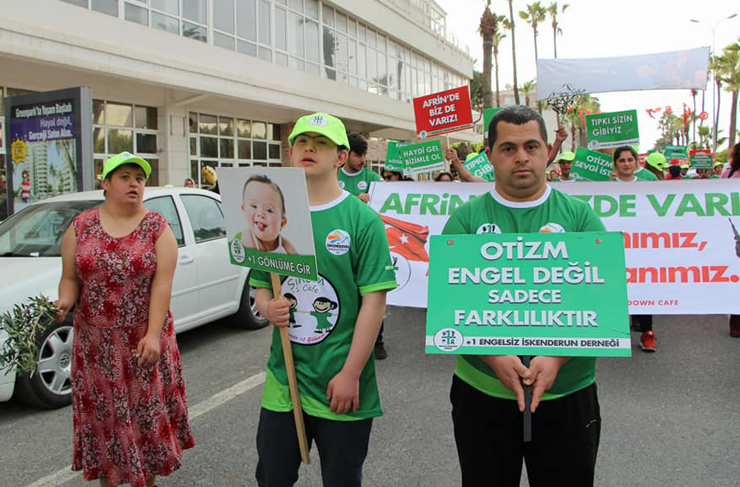 ‘21 Mart Dünya Down Sendromu Farkındalık Günü’ farkındalık yaratan down sendromlu gençler, yine farklarını ortaya koydu. Afrin’deki mücadelesini sürdüren Türk Silahlı Kuvvetlerimize destek için yürüyen down sendromlular, ellerinde zeytin dalları taşıdılar.