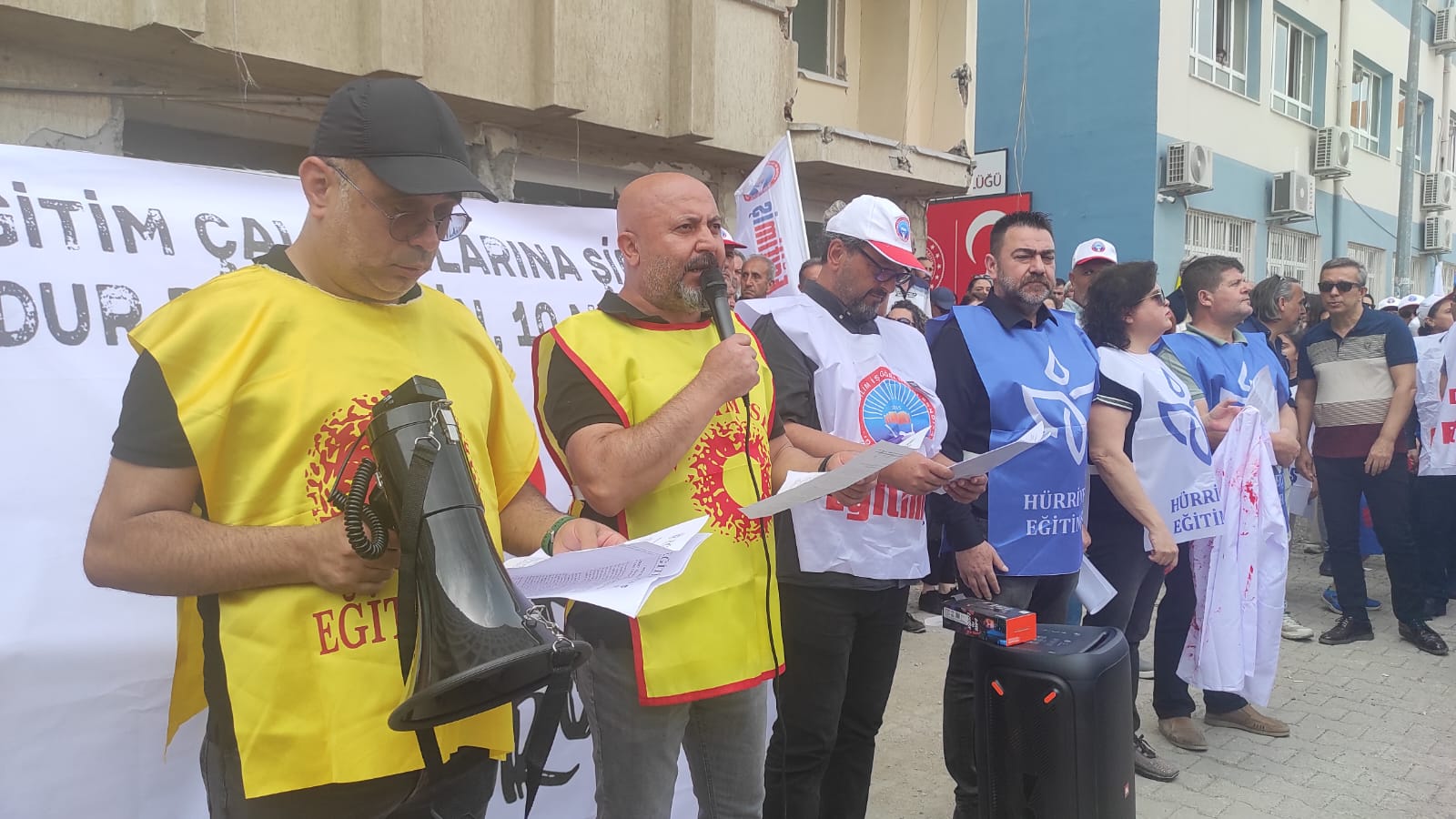 Eğitim Sen İskenderun Şube Başkanı Mustafa Ünsal, eğitimde yaşanan şiddetin önlenmesi adına somut adımlar atılması gerektiğini vurgulayarak; “Okullarda can güvenliğimiz sağlanmalıdır” dedi.