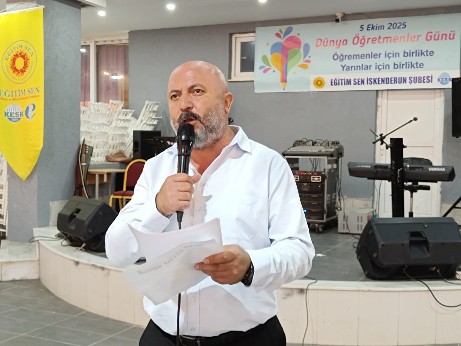 Laik eğitim,laik yaşam eşit yurttaşlık mücadelesinden asla vazgeçmeyiz. Eğitim Sen olarak Ülke genelinde de İskenderun Şube olarak ta yerelde, alanda sokakta iş yerlerinde emek ve demokrasi mücadelesi vermeye devam edeceğiz. Biz: Ekonomik krizlerin, afetlerin faturasının emekçilere yıkılmadığı, kimsenin cinsiyetinden, kimliğinden, inancından dolayı ikinci sınıf yurttaş muamelesi görmediği bir ülke istiyoruz” şeklinde konuştu.