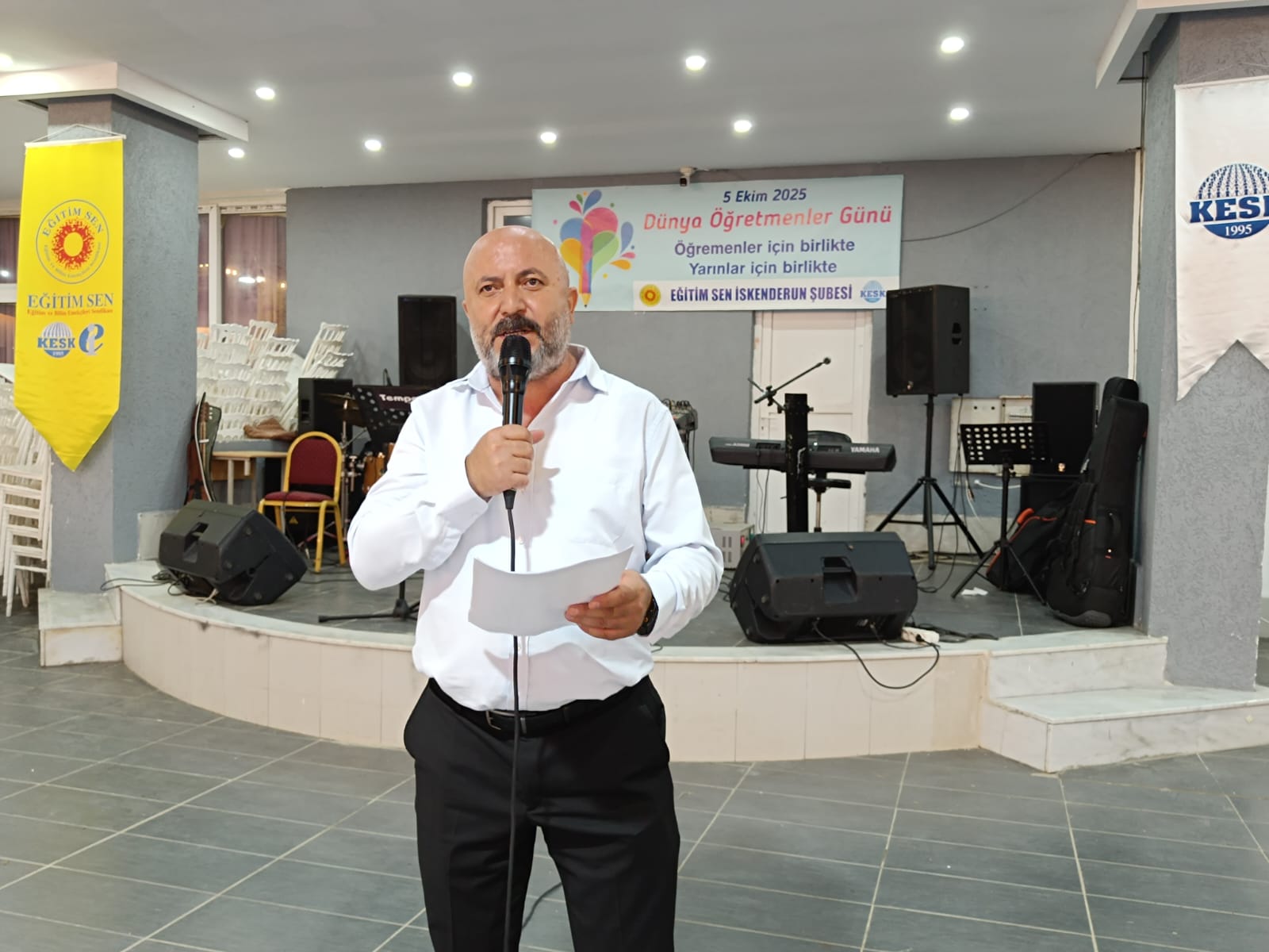 Laik eğitim,laik yaşam eşit yurttaşlık mücadelesinden asla vazgeçmeyiz. Eğitim Sen olarak Ülke genelinde de İskenderun Şube olarak ta yerelde, alanda sokakta iş yerlerinde emek ve demokrasi mücadelesi vermeye devam edeceğiz. Biz: Ekonomik krizlerin, afetlerin faturasının emekçilere yıkılmadığı, kimsenin cinsiyetinden, kimliğinden, inancından dolayı ikinci sınıf yurttaş muamelesi görmediği bir ülke istiyoruz” şeklinde konuştu.