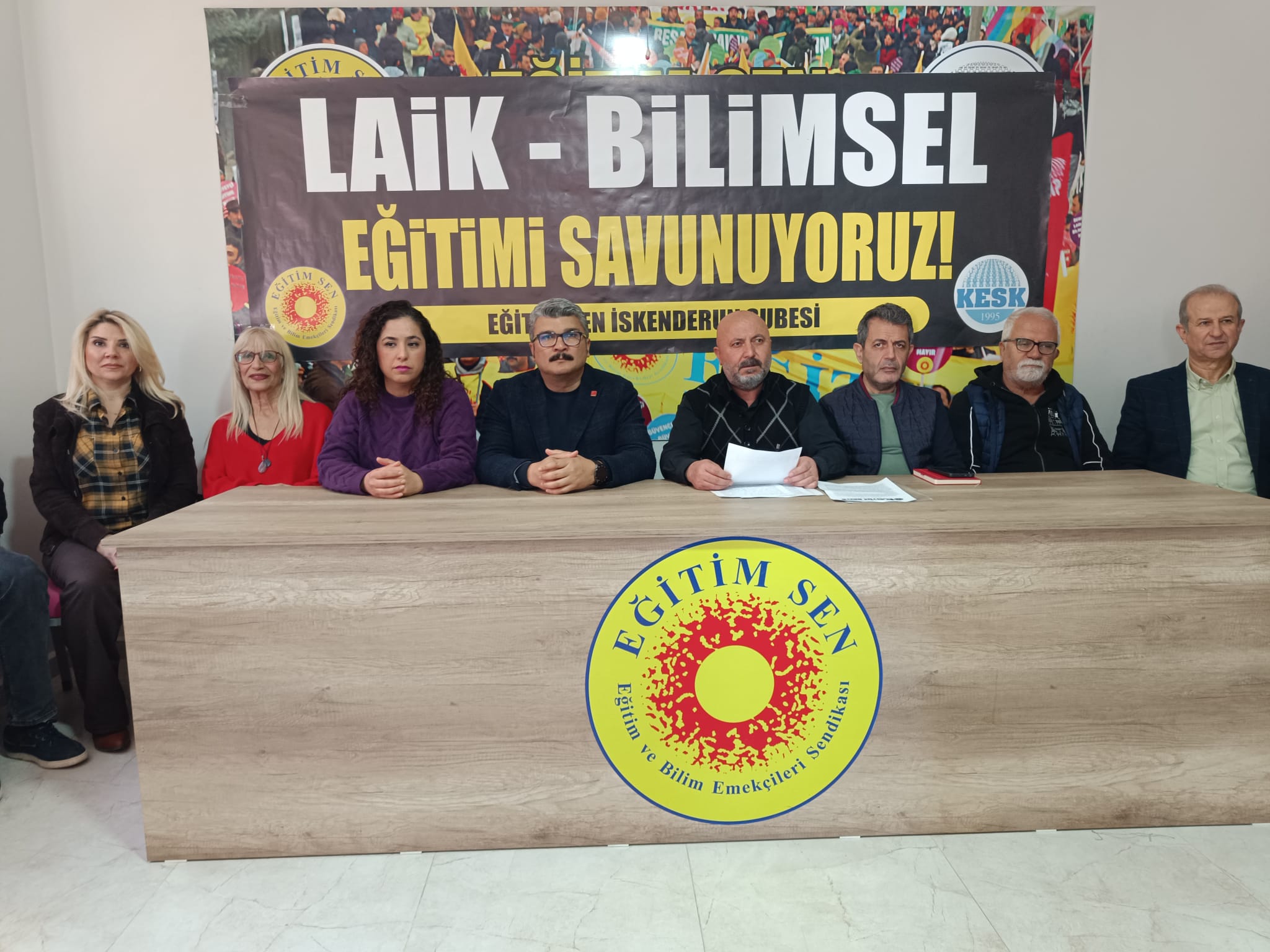 Eğitim Sen İskenderun Şube Başkanı Mustafa Ünsal, Millî Eğitim Bakanlığı’nın Ramazan ayı etkinliklerine ilişkin genelgesinin laiklik ilkesine aykırı olduğunu belirterek; “Hiçbir talimat Anayasa’dan üstün değildir” dedi. Açıklamaya CHP İskenderun İlçe Başkanı Hüseyin Derin ve TİP İlçe Başkanı Beyza Harbalıoğlu da destek verdi.