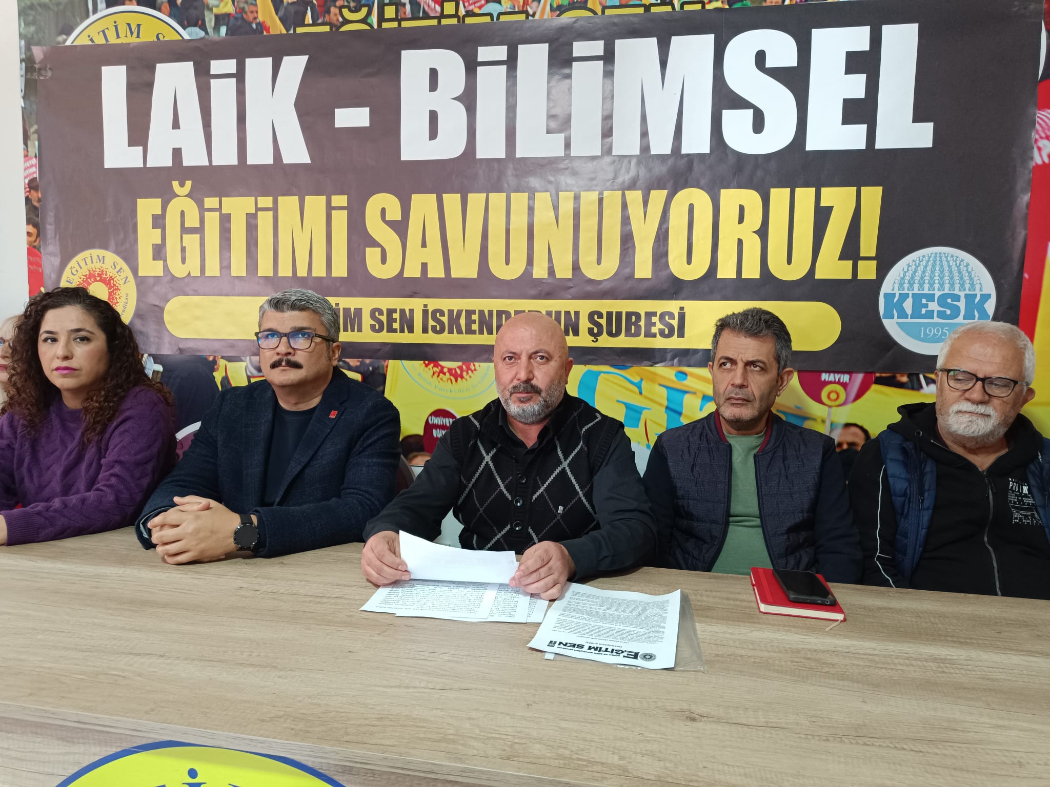 Eğitim Sen İskenderun Şube Başkanı Mustafa Ünsal, Millî Eğitim Bakanlığı’nın Ramazan ayı etkinliklerine ilişkin genelgesinin laiklik ilkesine aykırı olduğunu belirterek; “Hiçbir talimat Anayasa’dan üstün değildir” dedi. Açıklamaya CHP İskenderun İlçe Başkanı Hüseyin Derin ve TİP İlçe Başkanı Beyza Harbalıoğlu da destek verdi.