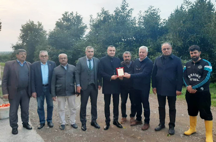 Hüyük mahallesinden Nezih Ağtaş, Gözcüler Mahallesi’nden yaklaşık 50 yıldır zirai ilaç bayiliği yapan Rızkullah Gümüş, Arpa Çiftlik Mahallesi’nde örnek çiftlik kuran ve hayırsever işadamı olan Ahmet Okan’ı yerlerinde ve çiftliklerinde ziyaret eden heyet bir süre sohbet ettikten sonra kendilerine ilçe tarımına katkılarından dolayı teşekkürlerini sundu, günün anısına plaket takdimi yaptı.