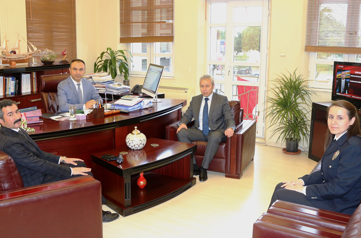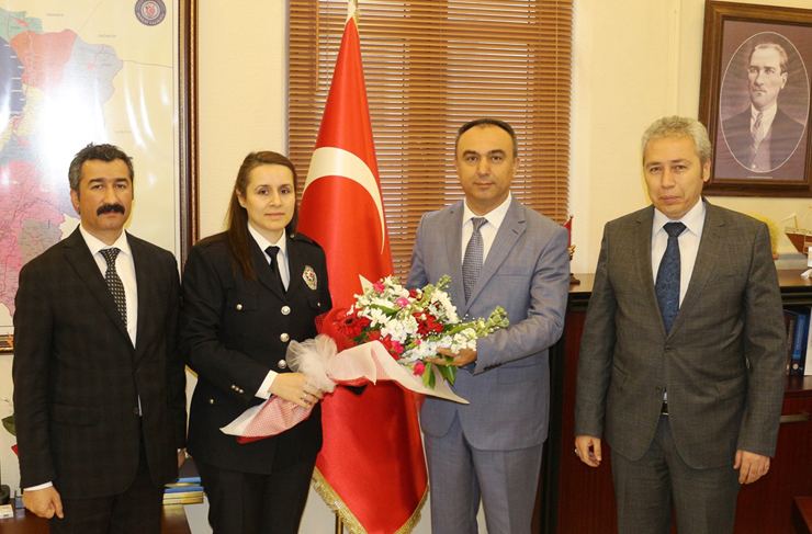 “Türk Polis Teşkilatı’nın Kuruluşunun 173’üncü Yıldönümü” münasebetiyle; İskenderun İlçe Emniyet Müdürü Zeki Balcı, İlçe Emniyet Müdür Yardımcısı Dinçer Dinsever Kalkan ve Özel Kalem Polis Memuru Gülsüm Yargıcı’dan oluşan heyet, İlçemiz Kaymakamı Recep Soytürk’ü makamında ziyaret ederek, günün anısına çiçek takdim etti.