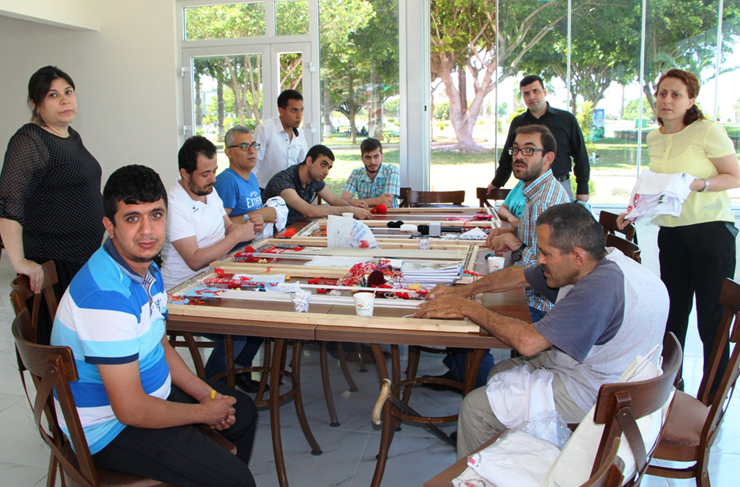 Sahilde bulunan İskenderun Belediyesi Engelsiz Atölye salonunda devam eden kurslarda engelli bireylere çeşitli kurslar veriliyor.