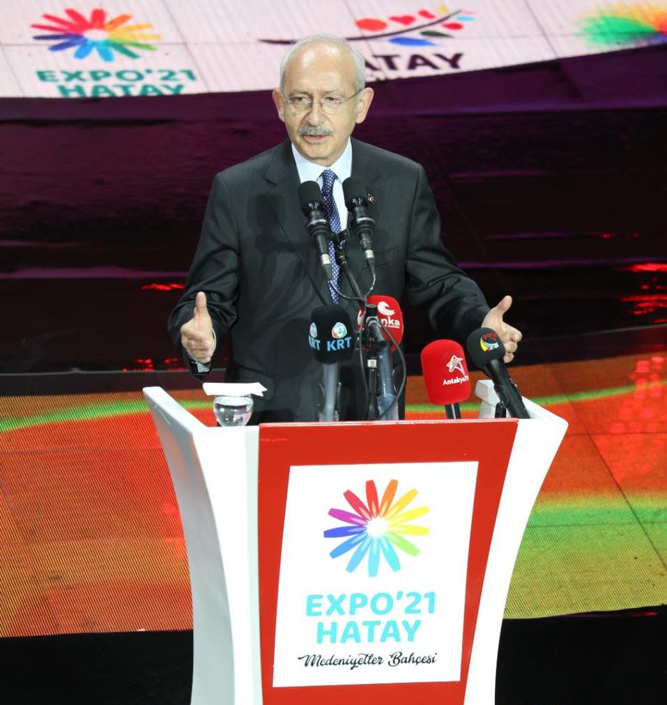 Törende konuşan Cumhuriyet Halk Partisi Genel Başkanı Kemal Kılıçdaroğlu, EXPO 2021 Hatay’ın büyük mücadele sonrası Hatay’a kazandırıldığını söyledi. Bu mekânın Hatay’a nefes aldıran bir mekân olduğuna işaret eden Kılıçdaroğlu, bu ortamı yaratan Belediye Başkanı Savaş’a teşekkür etti.