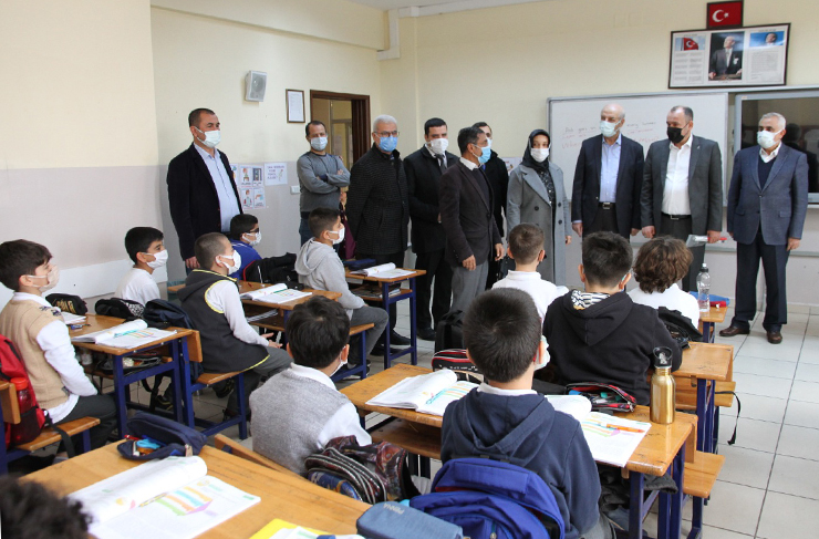 İlk olarak Uruç Reis İlkokulundaki özel sınıfı ziyaret edip oradaki öğrencilerle bir araya gelen Göçmen ve Güven, daha sonra Yunus Emre İmam Hatip Ortaokuluna geçerek, burada eğitim gören görme engelli Yavuz Selim Keçeli’ye beyaz baston armağan ettiler.